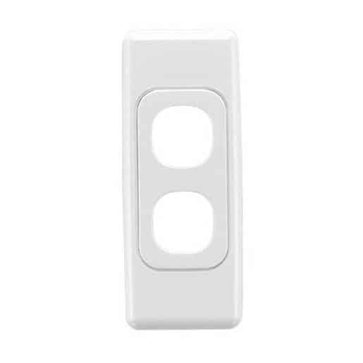 | Description | Clipsal 2000 Series 2032WE 2 Gang Flush Surround and Grid Plate, 86mm L x 34mm W x 11mm H, White Electric |