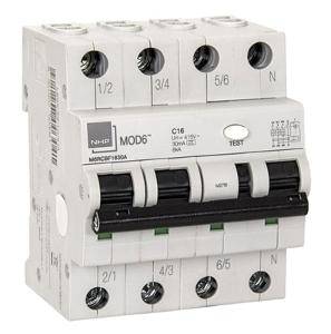Rcbo 3pole 16a c curve 30ma type a NHPM6RCBF1630A
